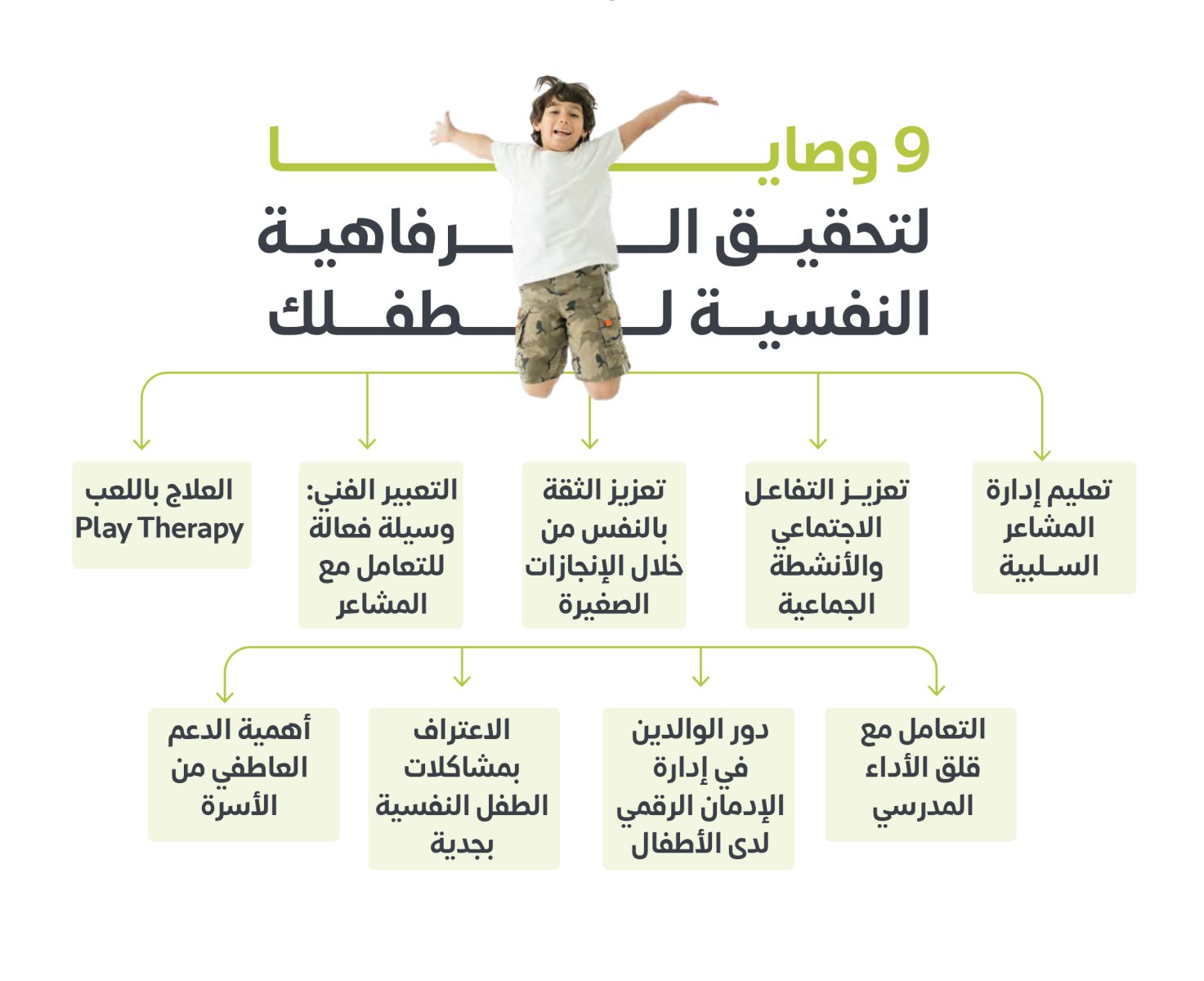 - توجيه الطفل للتفاعل مع أقرانه: تشجيع الطفل على تكوين صداقات والانخراط في علاقات اجتماعية صحية من خلال اللعب المشترك أو الدراسة مع أصدقاء.