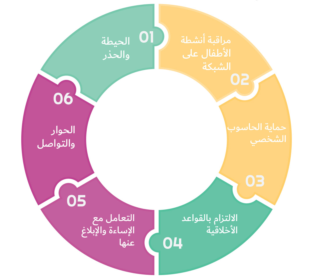 ذكر المركز التربوي للبحوث والإنماء مجموعة من الأمور المهمة لسلامة أطفالنا على شبكة الإنترنت، وأوضح أن منع الأطفال من استخدام الإنترنت ليس الطريق الأمثل لحمايتهم؛ لذا من المستحسن على الأهل أن يتفقوا مع أطفالهم على النقاط الآتية: