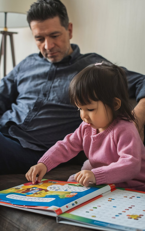 - بناء جملة: يتعلم الأطفال تركيب جملة بسيطة باستخدام صورة "أنا أريد" تليها صورة الشيء المطلوب.