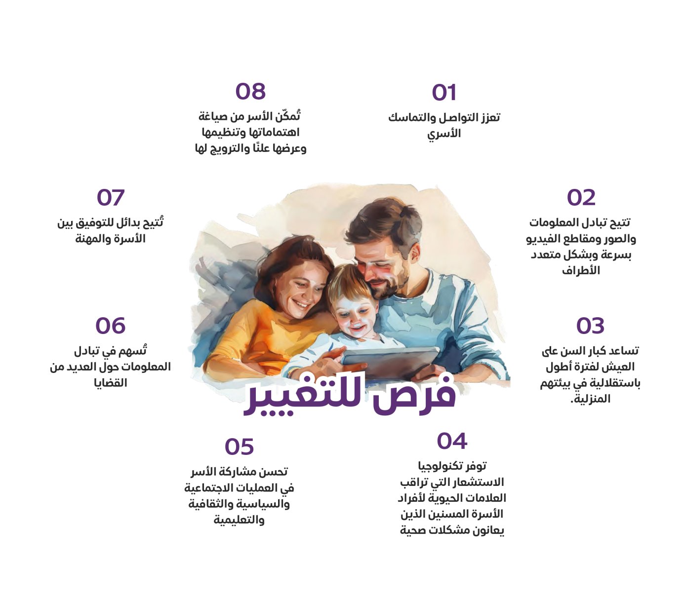 - الرقمنة تعزز التماسك الأسري والبقاء على اتصال دائم مع أفراد الأسرة الذين يعيشون بعيدًا